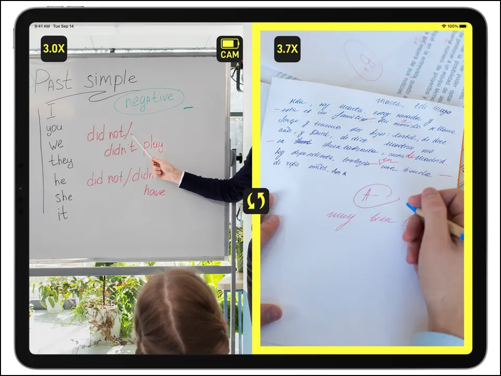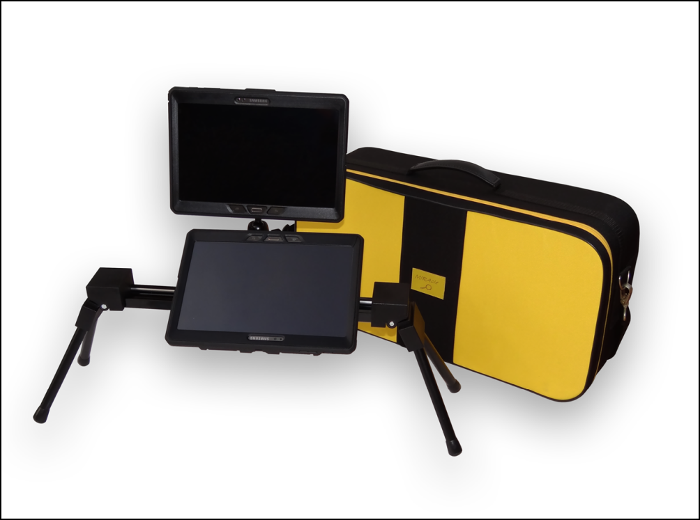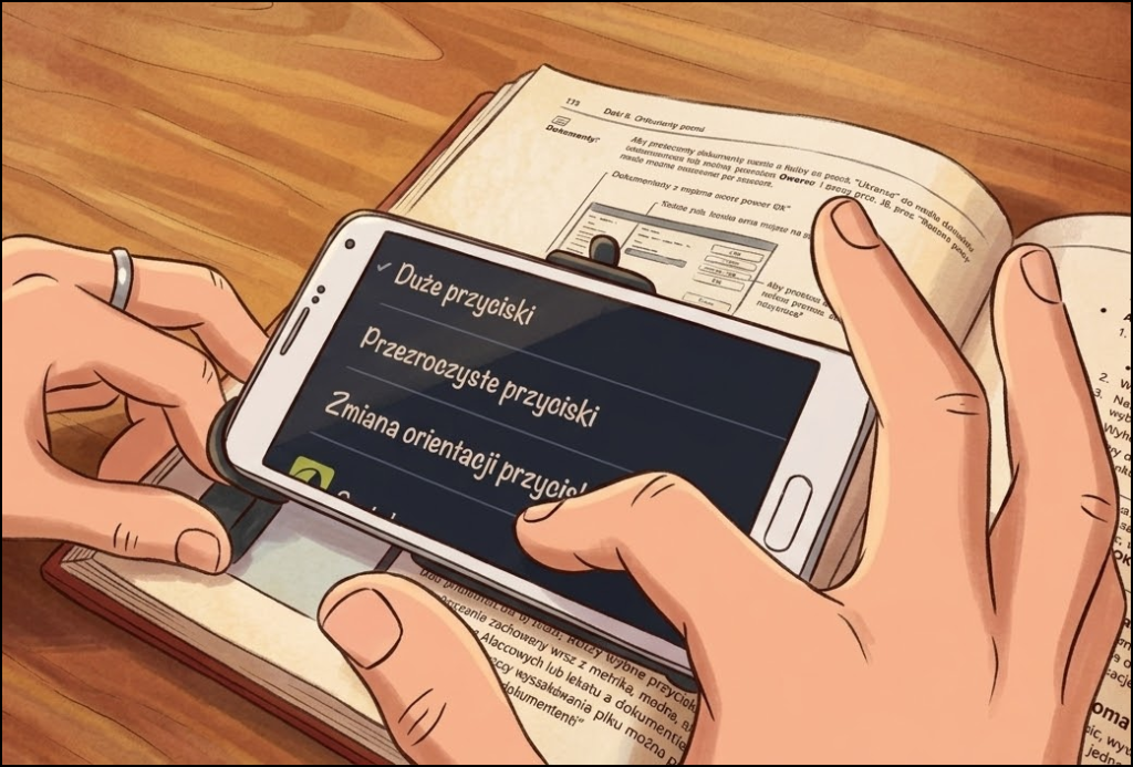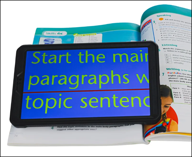 Powiększalnik przenośny z funkcją czytania, wyposażony w tablet.