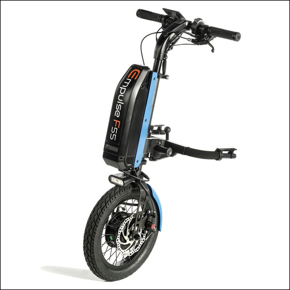 Urządzenie wspomagające EMPULSE R 20 to lekkie (5 kg), składane akcesorium, które ułatwia prowadzenie wózka inwalidzkiego bez konieczności inwestowania w drogi pojazd elektryczny. Pasuje do większości spacerówek inwalidzkich (średnica rurki ramy 22-28 mm), oferując prosty montaż i demontaż bez użycia narzędzi oraz intuicyjną obsługę jednym przyciskiem. Wyposażone w mocny silnik litowo-jonowy (5.8 Ah / 36 V), umożliwia regulowaną prędkość do 5 km/h, zasięg do 15 km, pokonywanie podjazdów do 10° i krawężników o wysokości 50 mm. Konstrukcja nie przeszkadza w samodzielnym napędzaniu wózka, a zatrzaskowy system mocowania ułatwia transport. Maksymalne obciążenie wynosi 190 kg, a urządzenie objęte jest przedłużoną gwarancją: 3 lata na silnik i 2 lata na akumulator, zapewniając wysoką niezawodność i komfort użytkowania.
